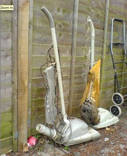 There's a house in Bedford Avenue that has been totally neglected for what must have been years- it has plants sprouting out of its windows, rotten frames, overgrown garden, letterbox stuffed with redundant leaflets, you name it. Someone spent all last week clearing it out, and there are things in the front garden including a couple of hoovers; the bag of one has completely rotted away to just a couple of threads, holding up al the solidified dust that had collected within it. Perfect.