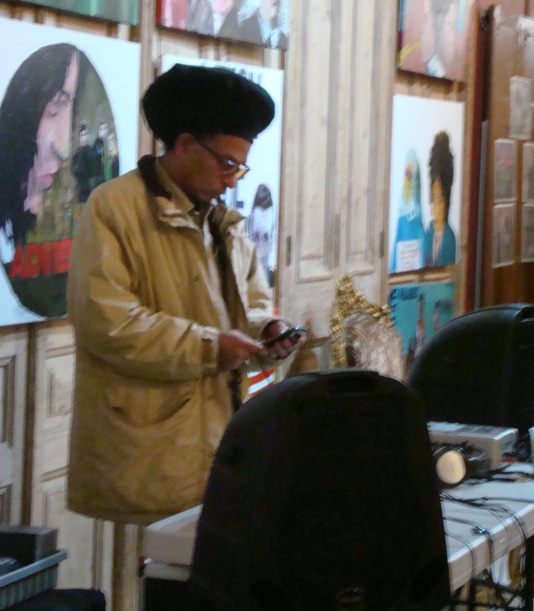 Anyway- the paintings. The best ones were The Nipple Erectors (they were selling cocktails of that name!) with a very funny rendition of Shane McGowan with Shanne standing behind him; and one of John Cooper Clarke standing next to a giant budgie exactly the same size as him. The budgie looks affronted, and John Cooper Clarke cowers in fear beside it.